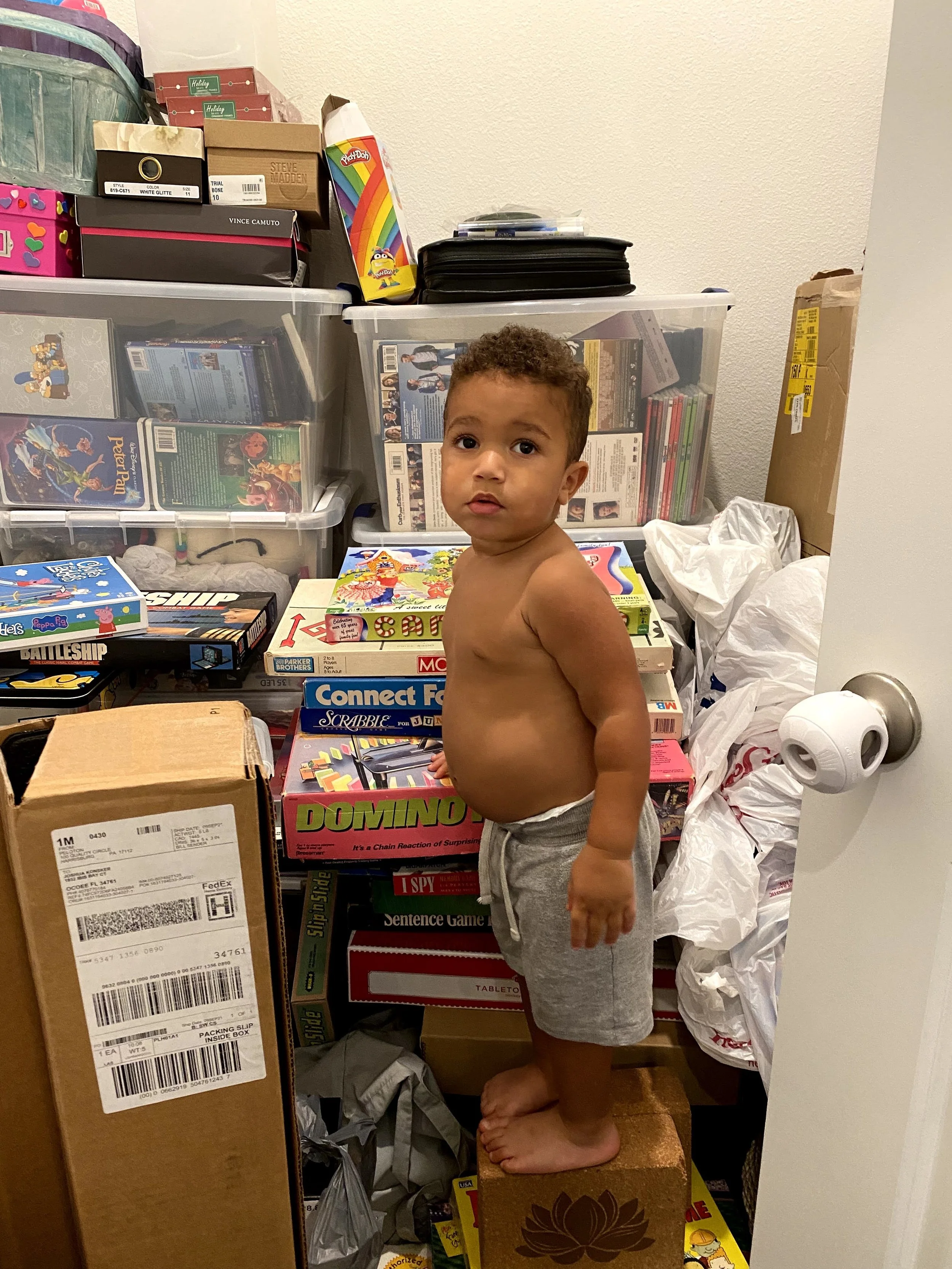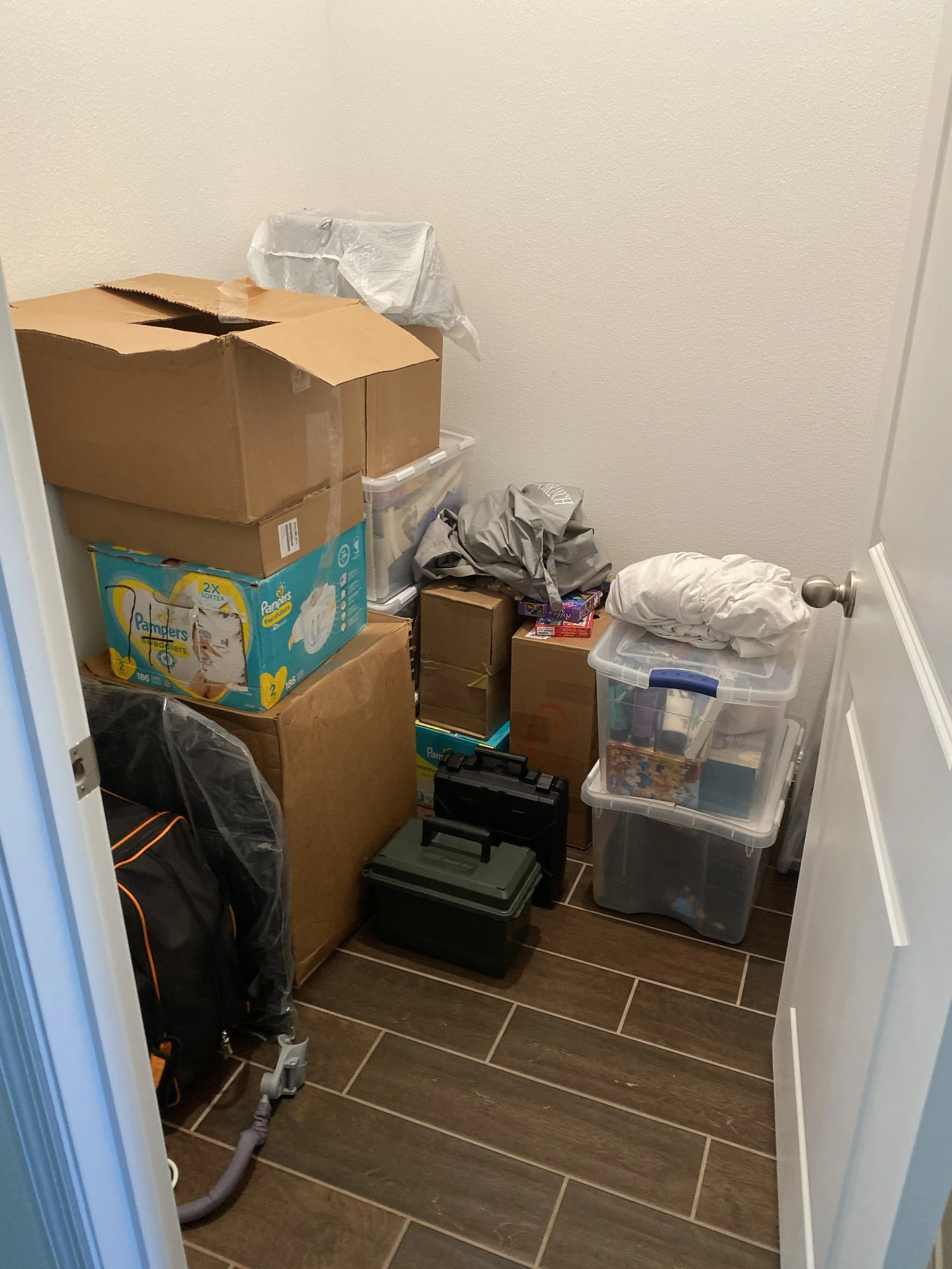 With custom shelving, this empty closet was transformed from a chaotic storage room of miscellaneous, inaccessible items into a streamlined, aesthetically pleasing Entertainment, Arts & Crafts Closet of dreams.